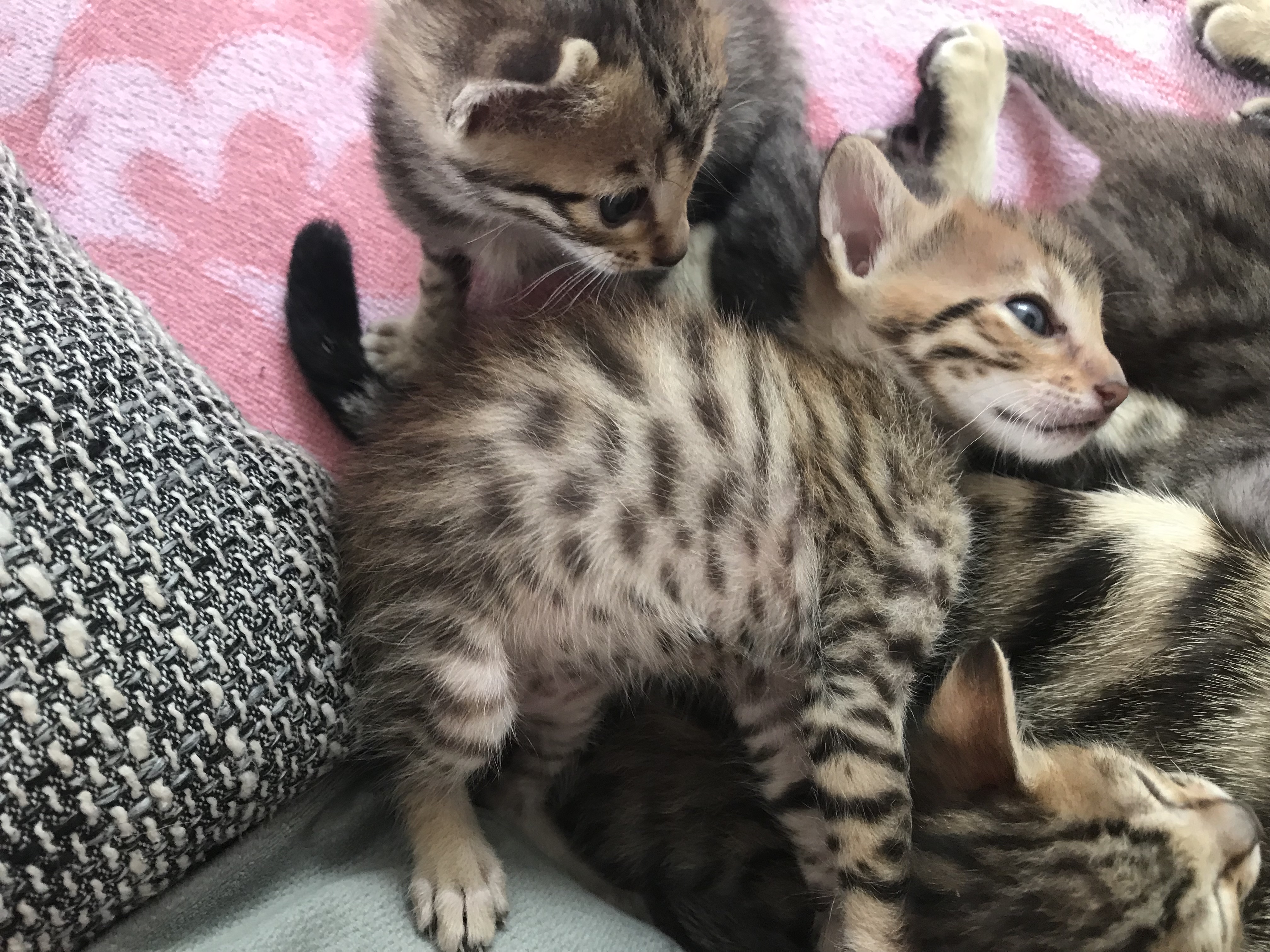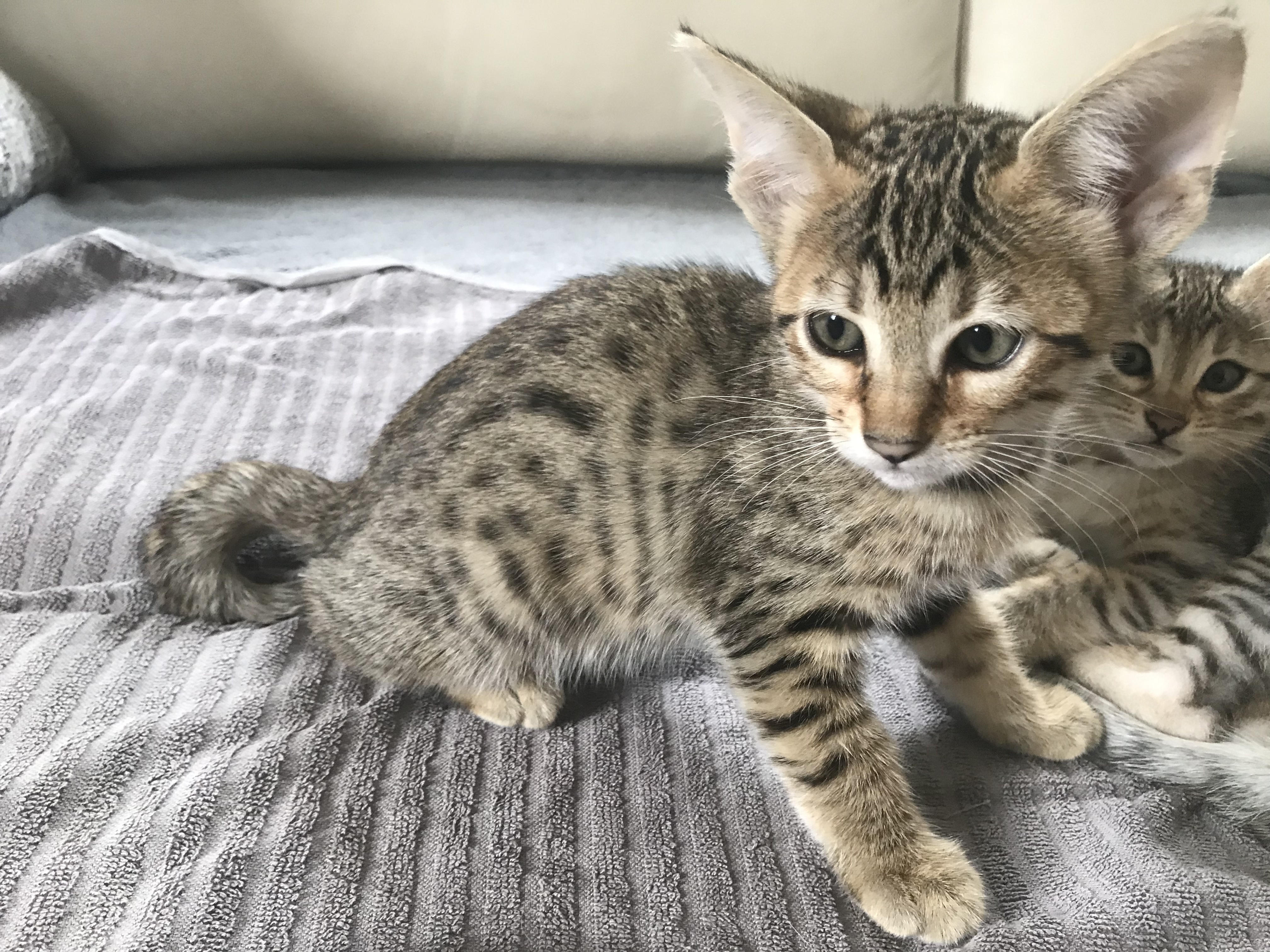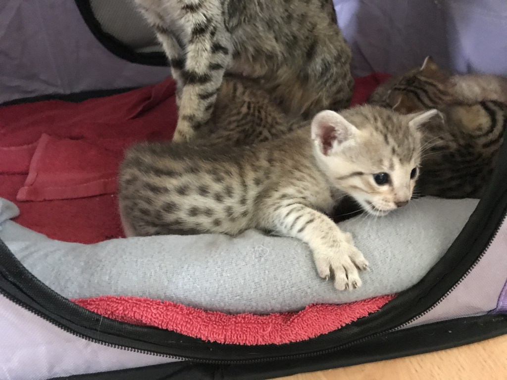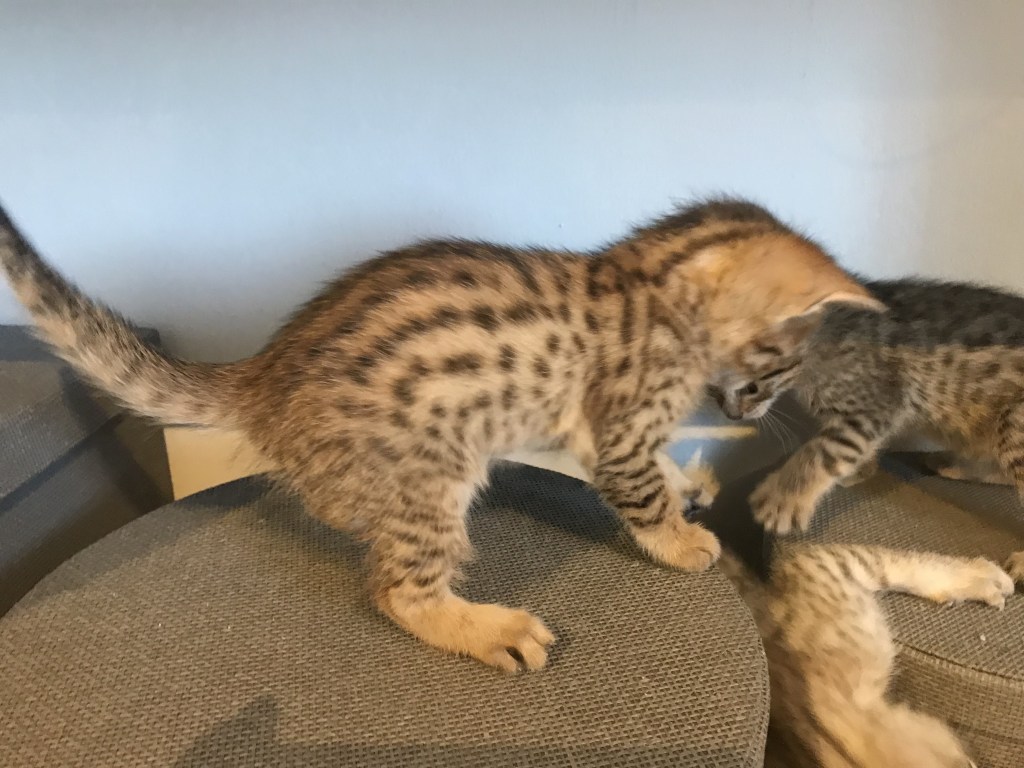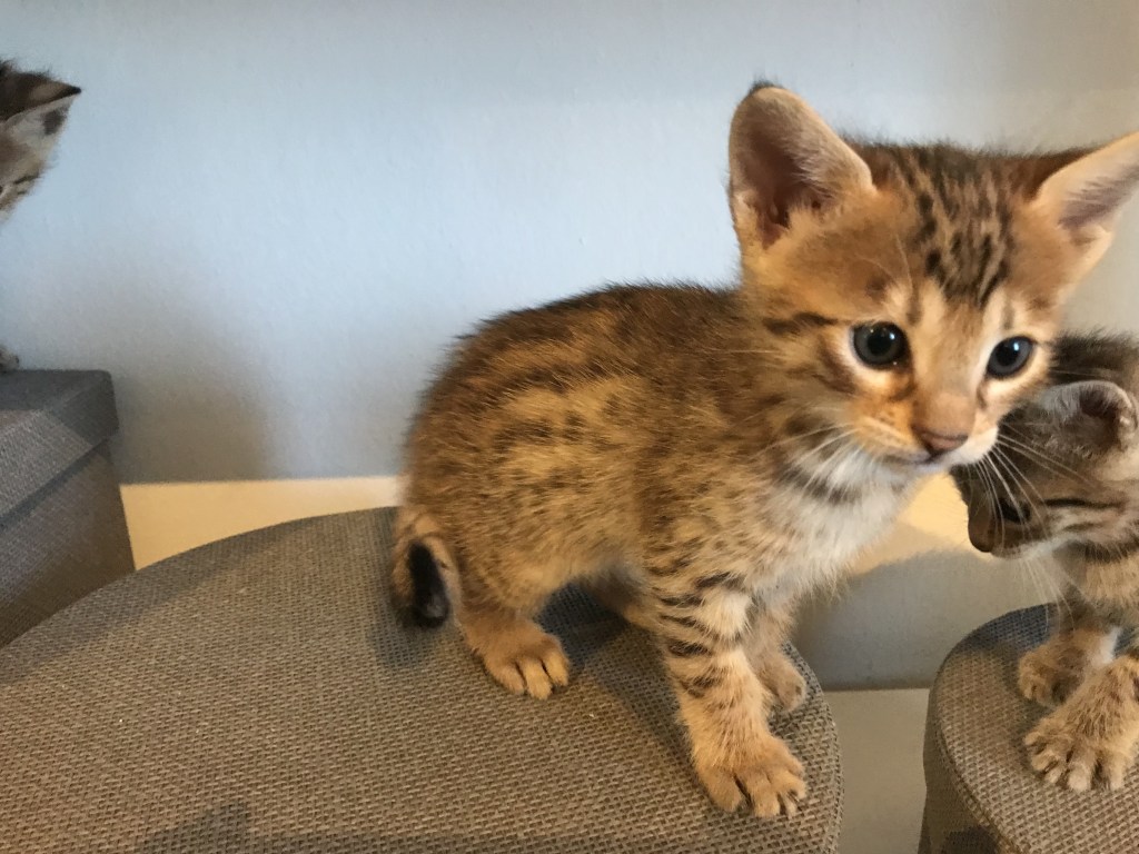 Alle unsere Kätzchen sind bei Abgabe geimpft, gechiped, und vom Tierarzt untersucht. Sie können nach der 12. Woche in ihr neues Zuhause ziehen.